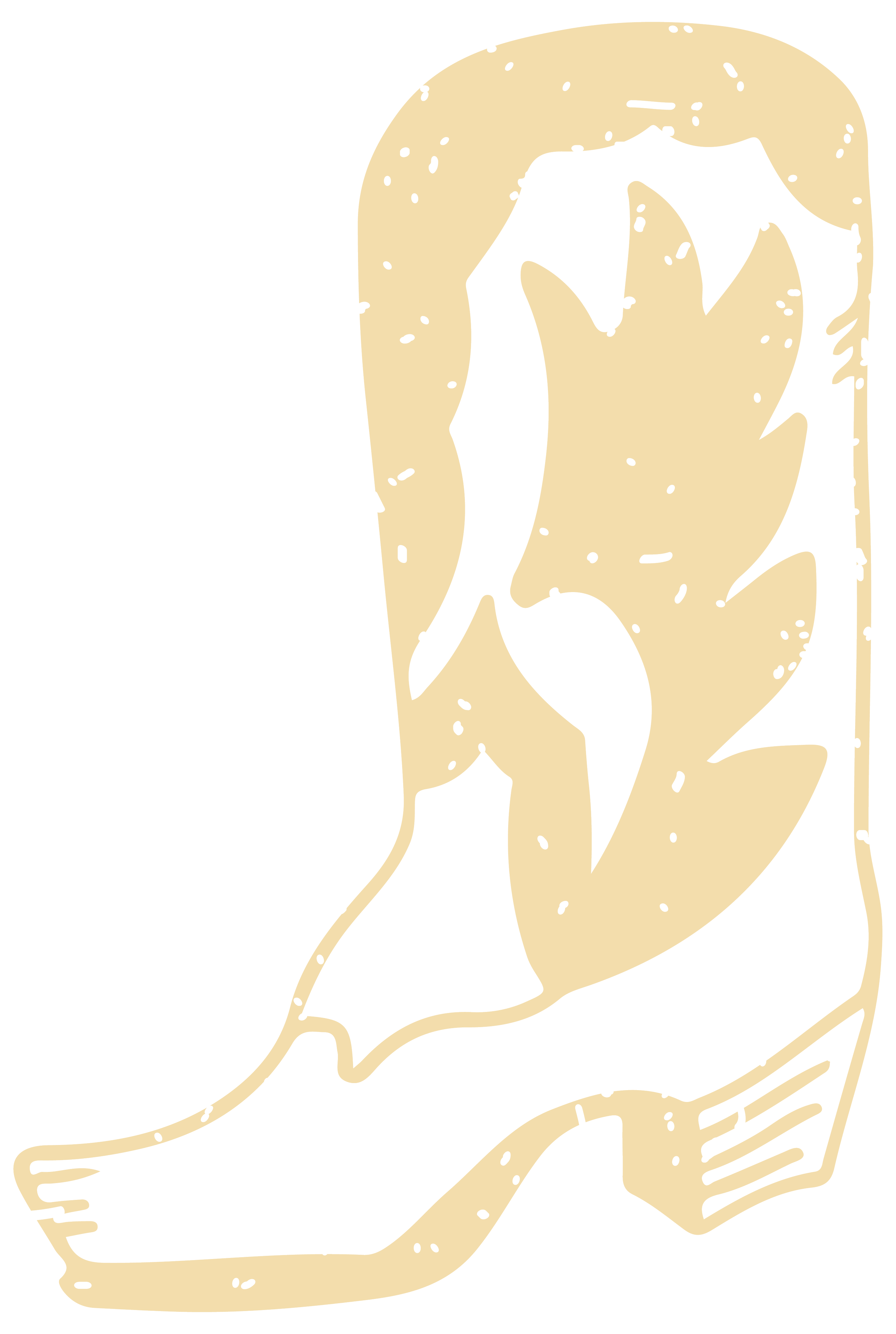 Line drawing of a tall saguaro cactus with several arms, some with flower buds